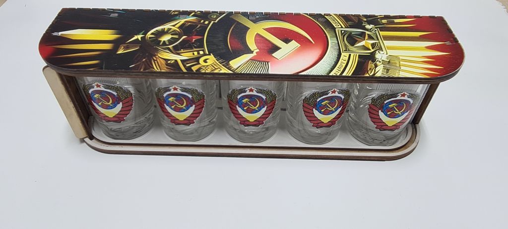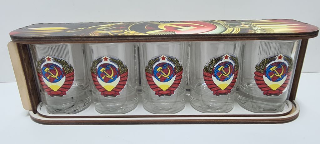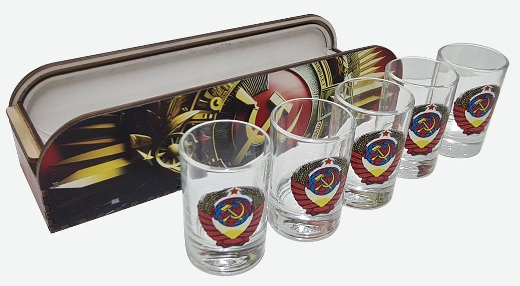 Представляем набор стопок, воплощающий дух целой эпохи. Комплект из пяти стопок с легендарным гербом СССР — это строгий, стильный и узнаваемый подарок, который оценят ценители истории, коллекционеры и все, кто ищет солидный аксессуар для застолья.